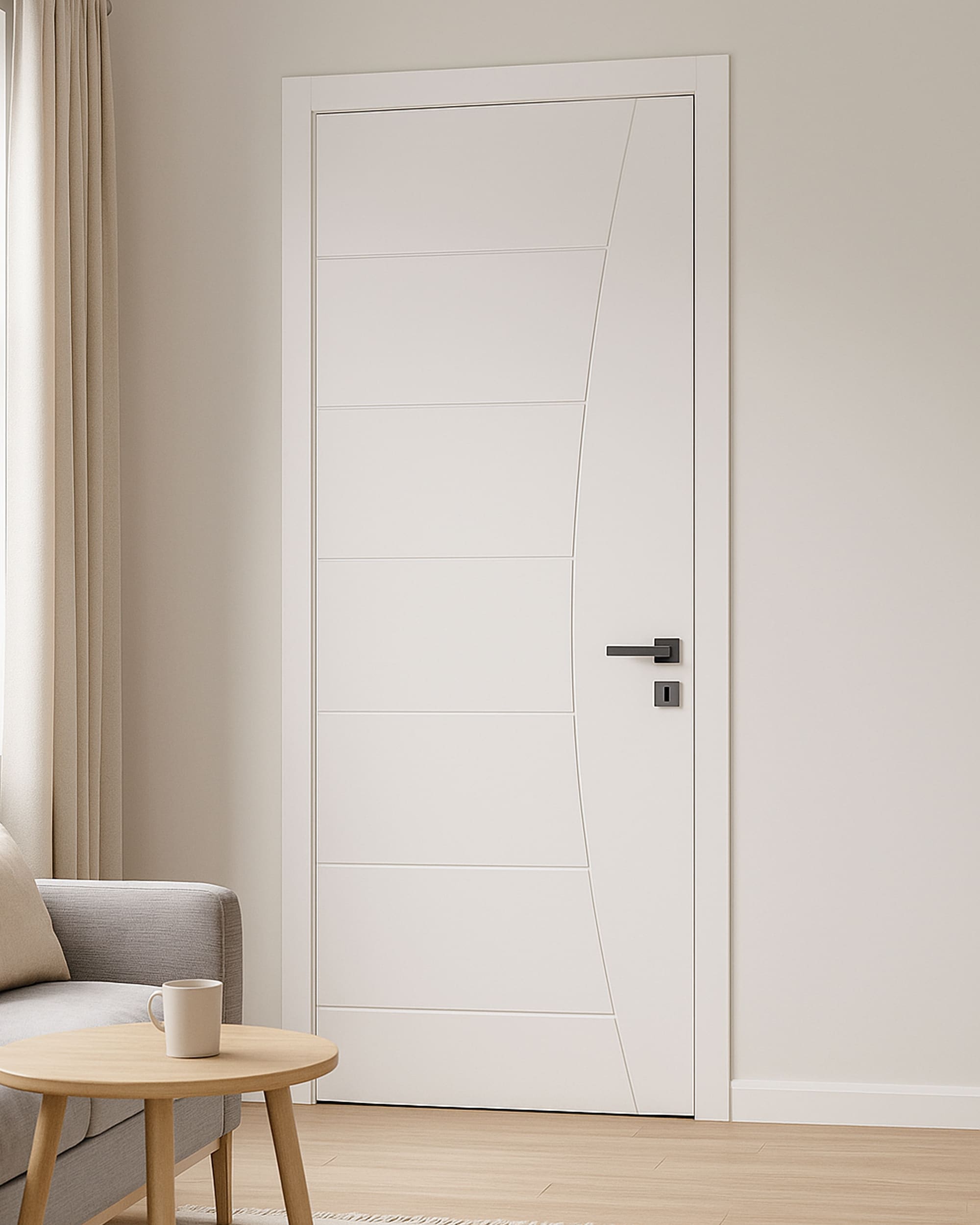The London door features crisp, evenly spaced grooves that create a refined visual rhythm. Its high-quality construction offers dimensional stability and a premium finish ready for paint. Designed to balance contemporary style with everyday practicality.