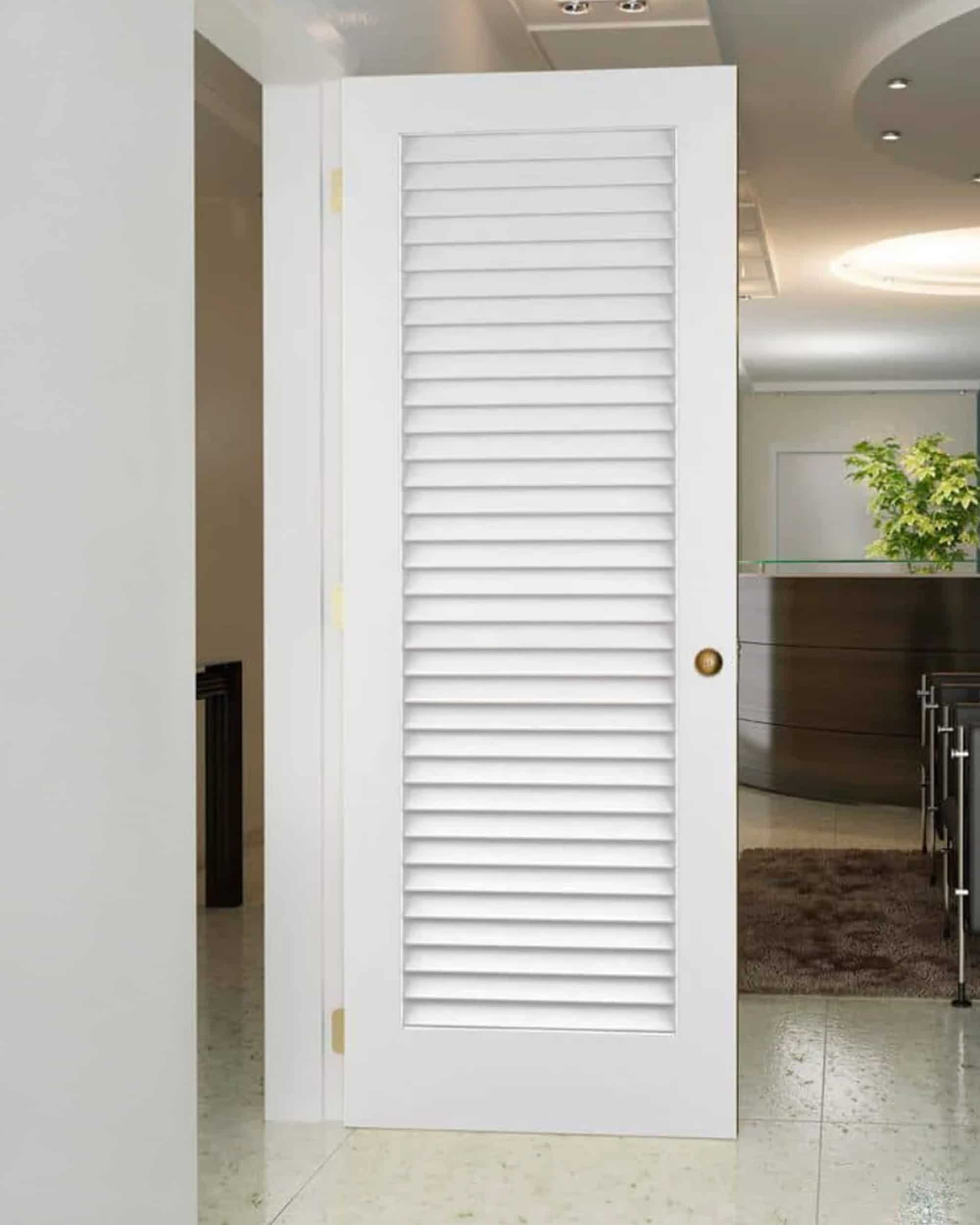 This version combines a single framed panel with wide louvers for a balanced, breezy design. Engineered for stability, it offers smooth operation and a paint-ready surface. Ideal for utility areas or transitional interiors with natural flair.