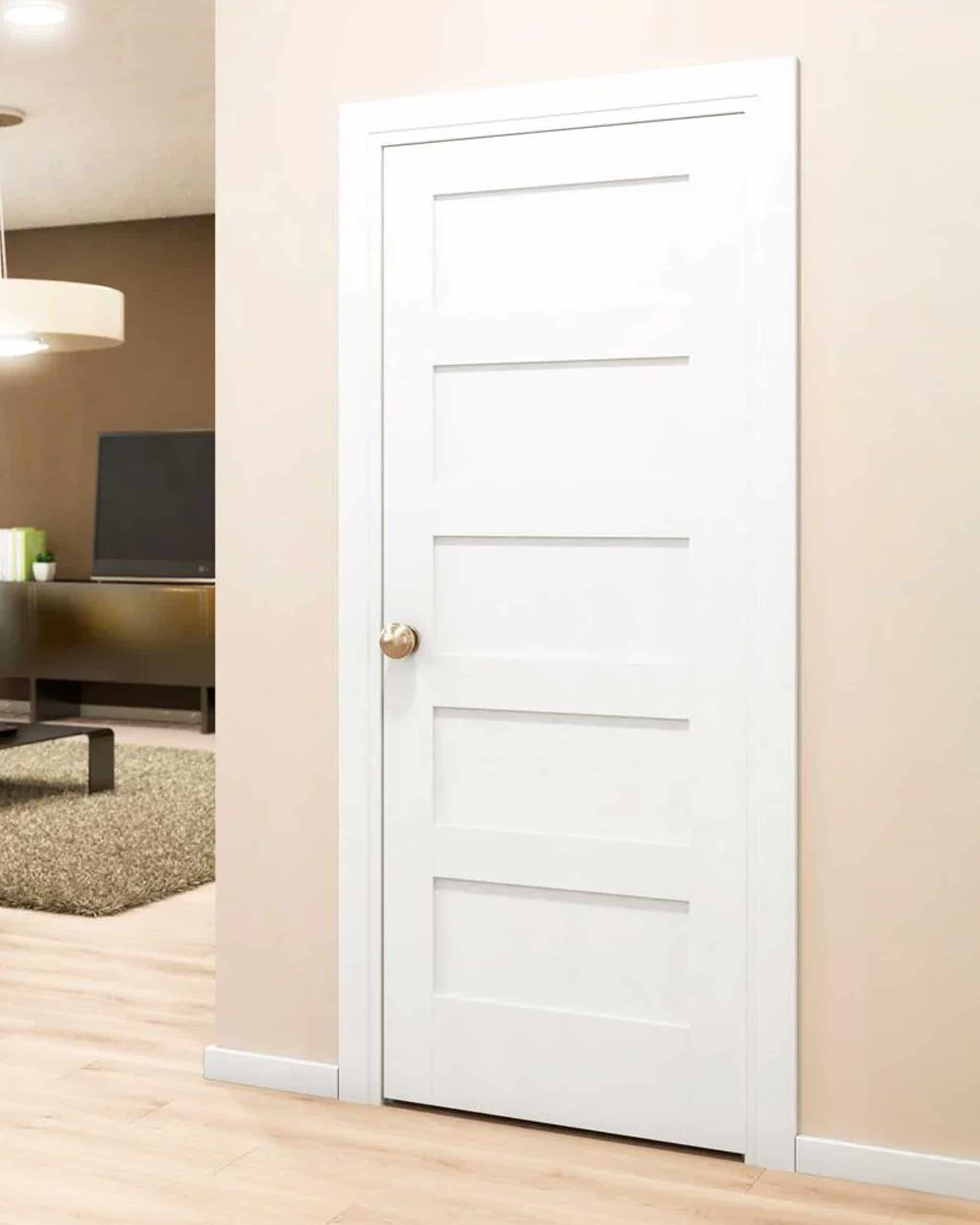 With five stacked panels, this design adds architectural balance and depth. Engineered from durable materials with authentic stile-and-rail detailing, it’s both stylish and reliable. A great choice for interiors that value proportion and permanence.
